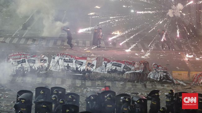 Namun massa semakin maju dan terus mendekati aparat. Aparat pun merespons dengan kembali menembakkan beberapa kali gas air mata ke arah massa.
