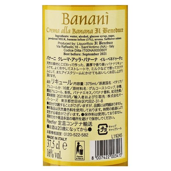「バナーニ クレーマ・アッラ・バナーナ」は、南イタリアで造られた甘くて濃厚な香り高いバナナリキュールです。