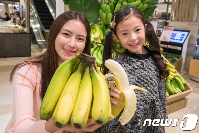 | 서울 중구 롯데백화점 식품관에서 모델들이 제주 바나나를 소개하고 있다. 제주산 바나나는 수분 함량이 높고 향이 진한 것이 특징이다.(자료사진) /뉴스1 © News1 |