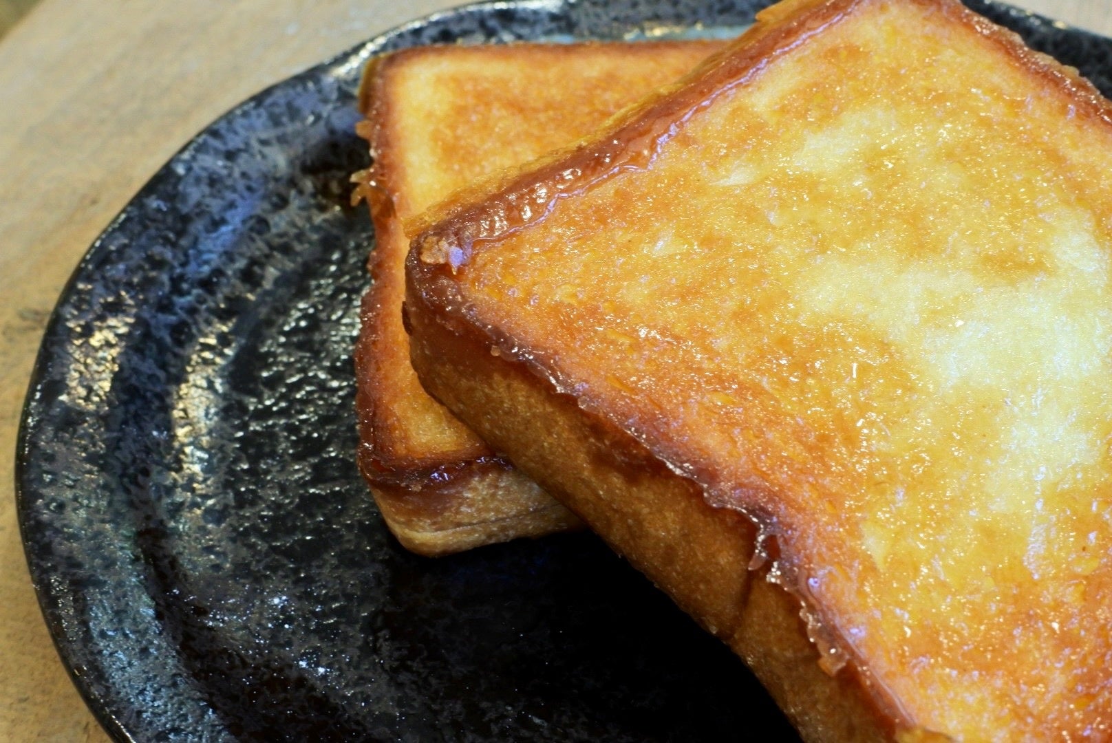 表面には香ばしくカリッとした歯ざわりを出すために国産きび糖を使用。中はもっちりきめ細かなル・ミトロンの食パンに、たっぷりのハチミツとバターが染み込み、じゅわっと濃厚な甘さが溢れ出る、まさに”カリじゅわ”が味わえる一品です。