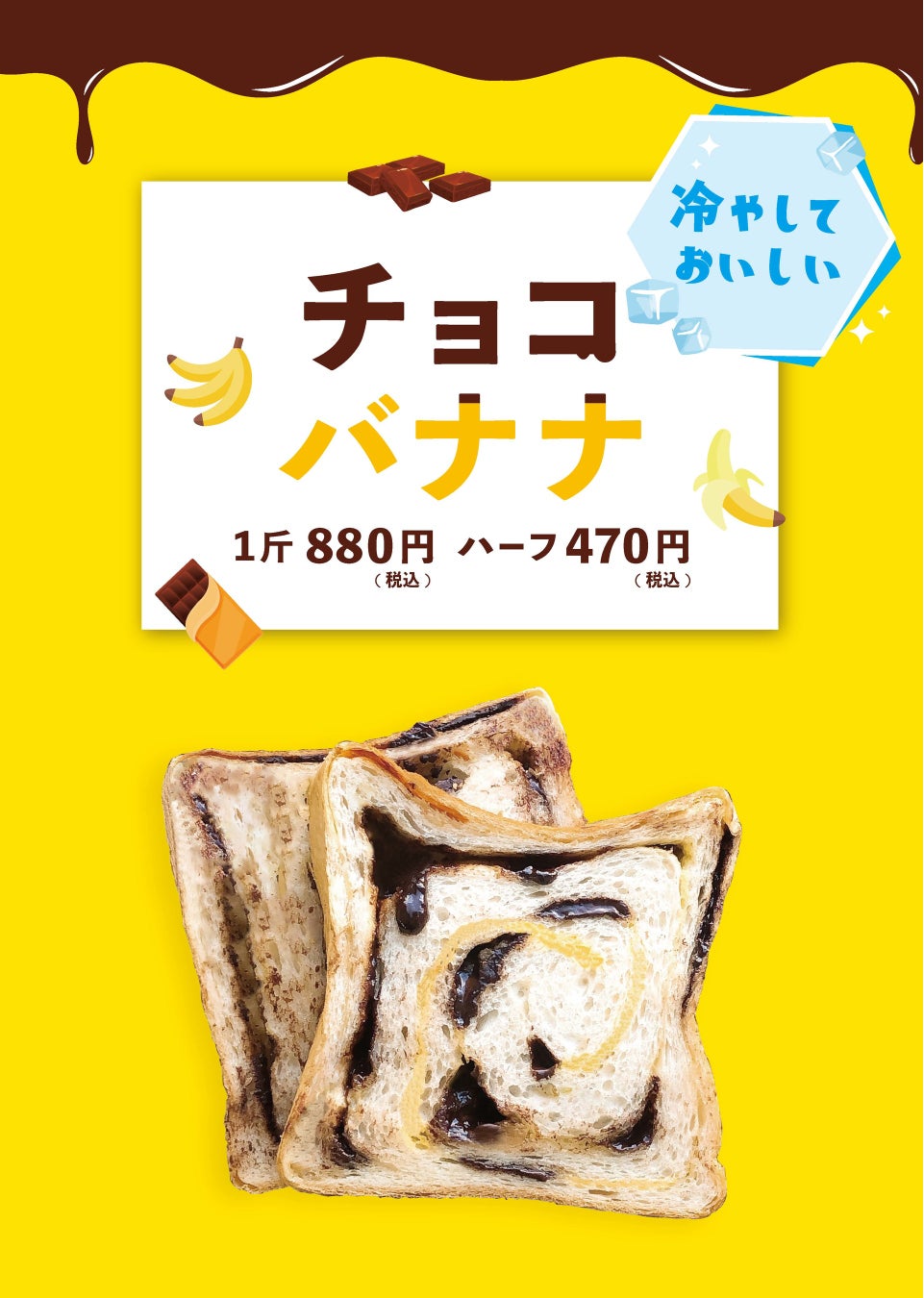 バナナとチョコレートの王道な組み合わせに加え、カスタードをプラスする事でさらにリッチな味わいになりました。もちろん焼いてもお楽しみいただけますが、冷蔵庫で冷やして食べると更に美味しい、初夏にぴったりな”冷やし食パン”です。