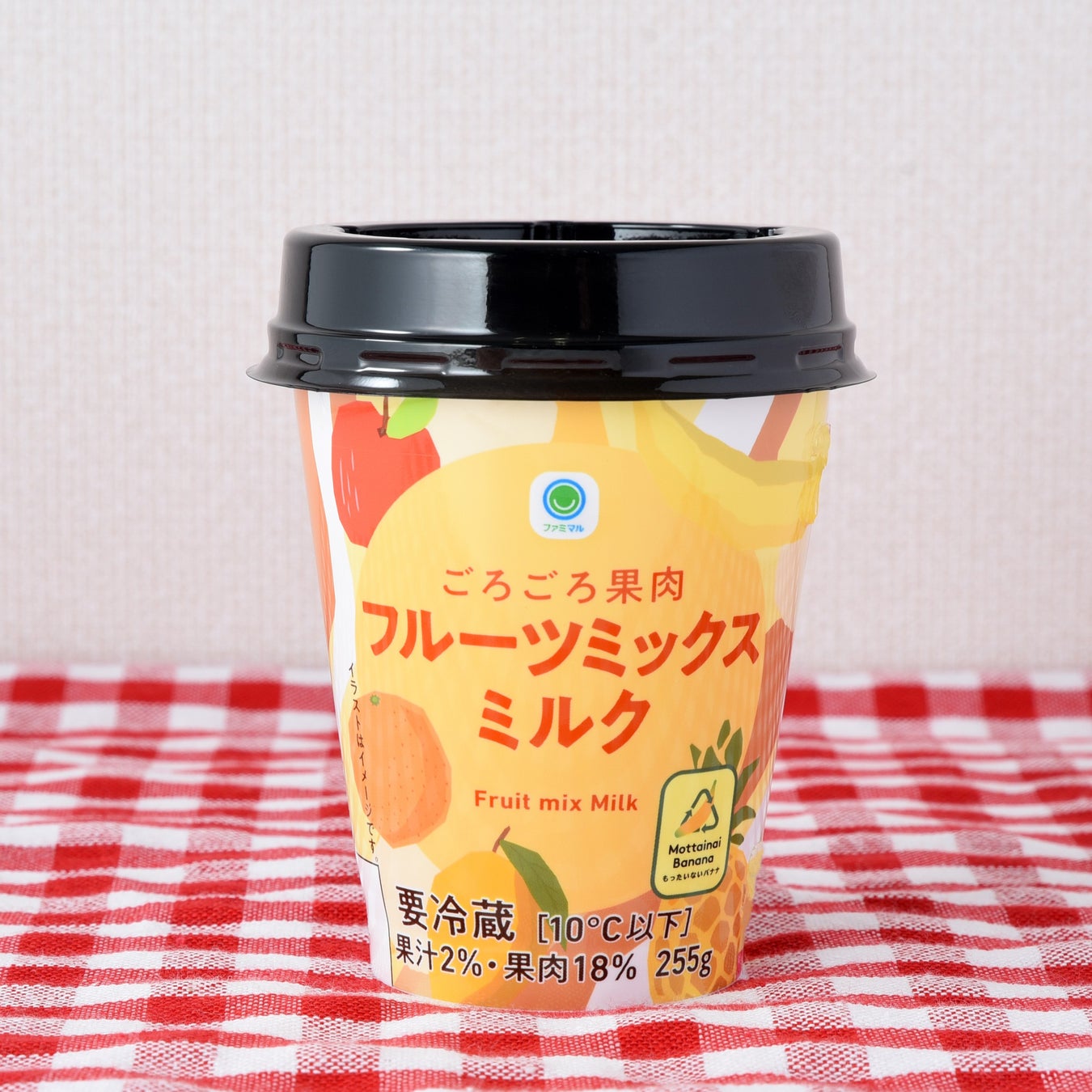 【内容】バナナ果肉にはドールの「もったいないバナナ」を、バナナピューレーにはファミリーマートのプライベートブランド”ファミマルKITCHEN”の商品「高地栽培バナナ」の規格外バナナをそれぞれ使用しています。いずれもフィリピンの高地で育てられた高地栽培バナナで、甘さとコクがぎっしり詰まっているのが特長です。規格外でも通常品と同等の品質が保証されており、美味しく召し上がっていただけます。バナナの他に、マンゴーとパインアップルの果肉、オレンジとリンゴの果汁を乳製品に加えることで、ごろごろとした果肉感とフルーティーな味わいが楽しめるフルーツミックスミルクに仕上げました。