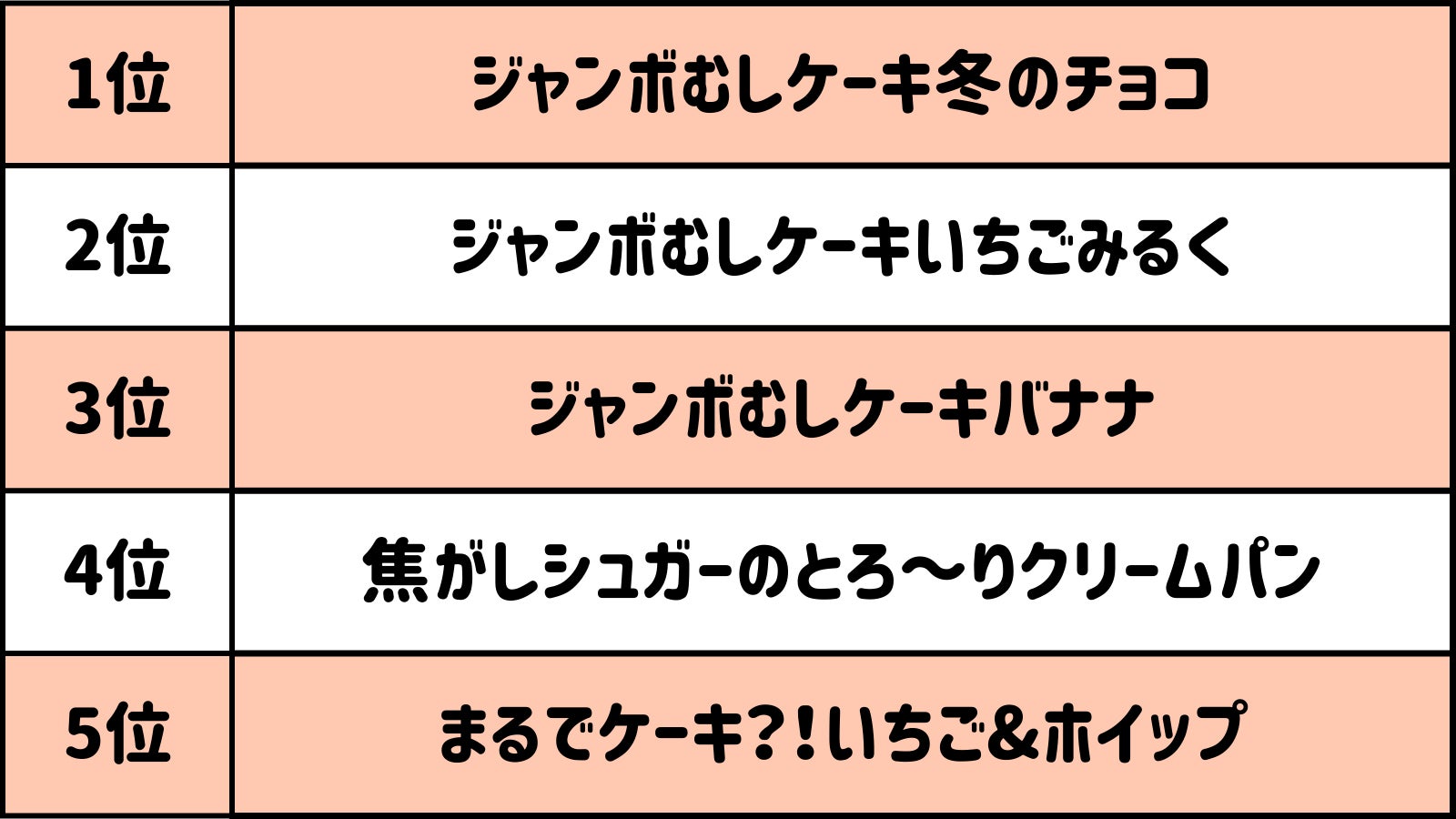 4~5位は新登場の“至福のひとときシリーズ“「焦がしシュガーのとろ~りクリームパン」「まるでケーキ⁈いちご&ホイップ」がランクインしました。
