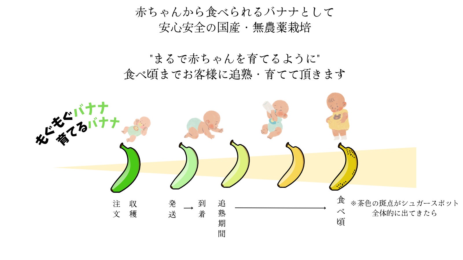 ベイビーバナナは、お客様に赤ちゃんを育てるように追熟体験を行っていただきます。
