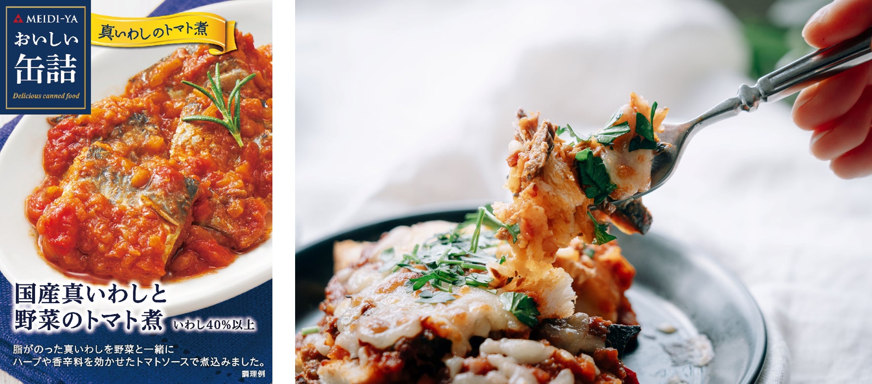 脂がのった真いわしを野菜と一緒に香辛料を効かせたトマトソースで煮込んだ「国産真いわしと野菜のトマト煮」を、ひと口サイズにカットした食パンの上にのせ、さらにシュレッドチーズをのせてオーブンで焼き上げたグラタンです。「銀河高原ビール 小麦のビール」と合わせることで、トマトの酸味の角をとり、イワシの旨味が引き立ちます。